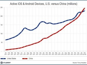 转载自:CocoaChina移动应用分析机构Flurry 最新报告显示,2013年中国春节过后,中国已经超越美国成为活跃iOS、安卓智能手机和平板电脑数量最多的国家。2013年1月底,中国的智能设备数量为2.21亿部,美国为2.22亿部。根据2月上半月智能设备增长趋势,Flurry预计中国市场智能设备数量或达到2.46亿部,而Flurry预计美国市场大约为2.3亿部。中国庞大的人口数量有望使中国在智能设备数量上继续领先包括美国在内的其他国家。截止2013年1月,英国智能设备数量为4300万部,韩国和日本分 详细