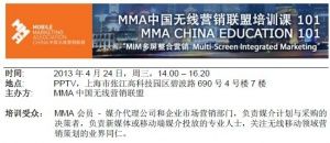 MMA中国无线营销联盟教育委员会发起的‘MMA中国无线营销教育培训101’4月24日在上海启动。第一次的培训课程在PPTV上海举行,吸引了超过70位的来自广告主,代理公司及无线营销的业界同仁报名参加。 点击下载培训课件 详细