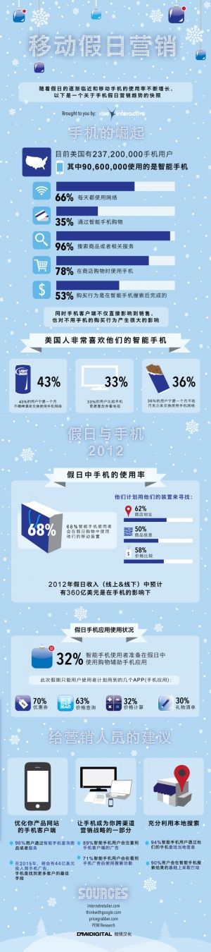 随着假日的逐渐临近和移动手机的使用率不断增长,假日营销已经成为当下最火的话题之一,人们的智能手机使用率不断攀升,在这种大前提下营销人员要作何应对,下面的信息图将给你解答。 详细