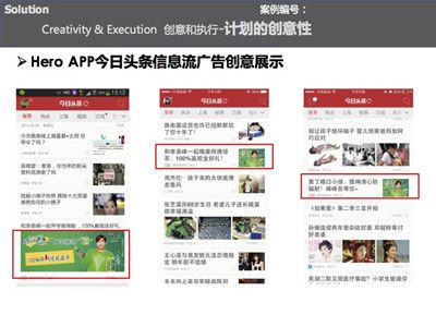 第三,本次投放也初次尝试了多盟移动DSP的精准技术,通过hero App的信息流形式来实现广告的实时竞价以及千人千面的广告形式,通过高效的算法为广告主节省每一分钱。