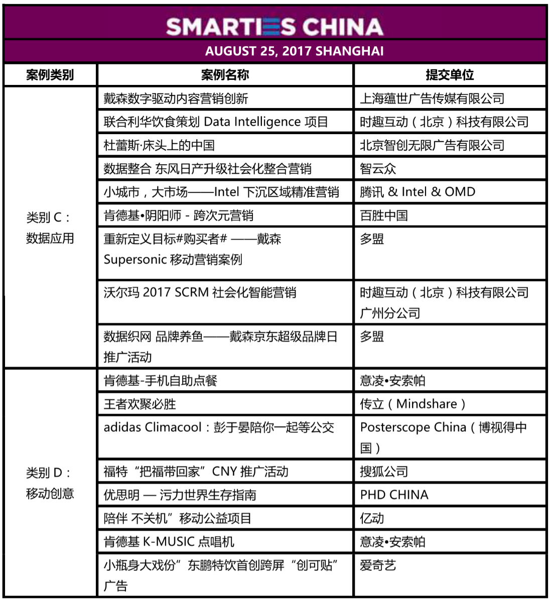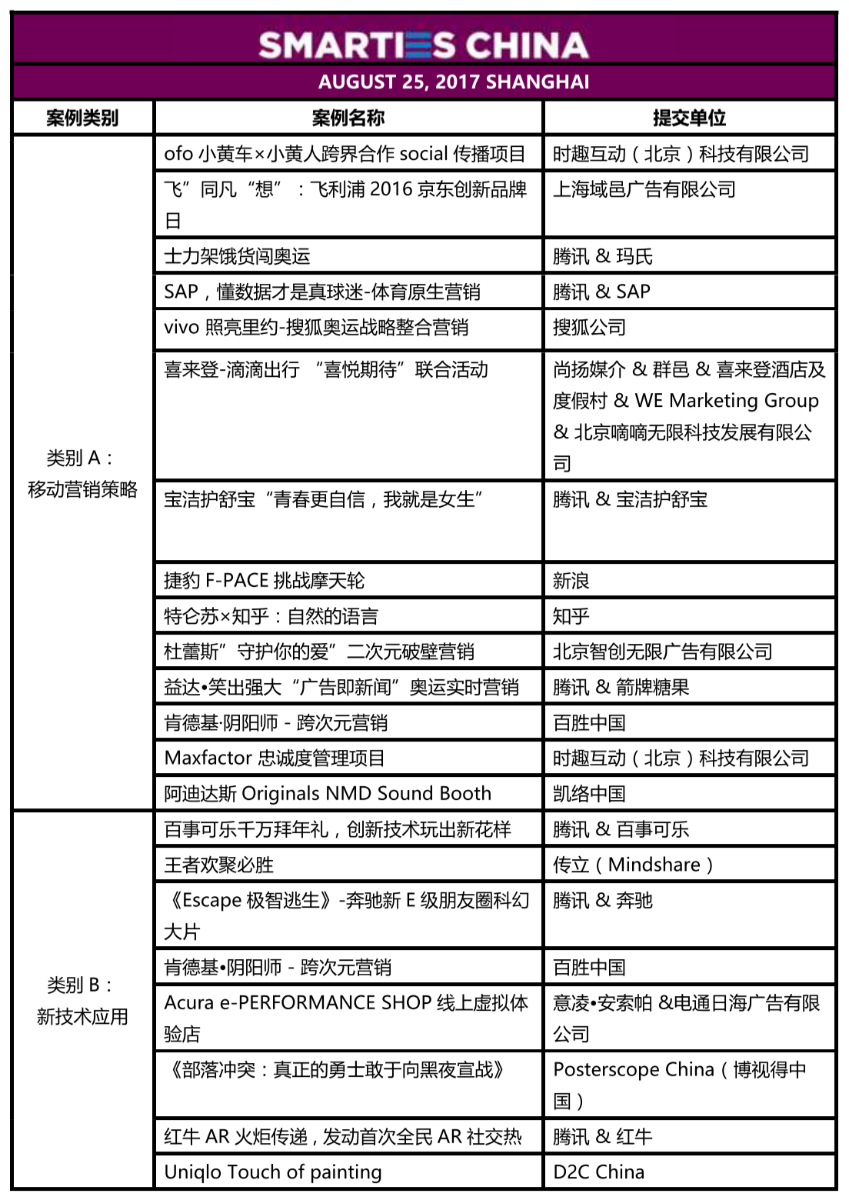 揭晓!The Smarties China 2017中国无线营销大奖入围名单