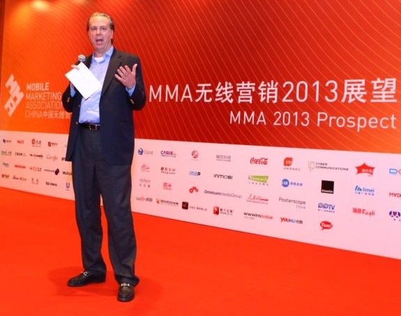 2013年2月25日,上海 -- MMA中国无线营销联盟今日举办了“MMA无线营销2013展望”。MMA 无线营销联盟 全球CEO Greg Stuart 先生现场与超过100位媒体和企业会员代表互动,共同展望2013年全球及中国无线营销市场。Greg Stuart (MMA无线营销联盟全球首席执行官)作为全球卓越的专注于手机营销的行业组织,MMA无线营销联盟致力于与中国顶级的营销机构建立更加紧密的合作,以推动中国加入最有影响力的手机新兴市场行列。截至2012年12月,中国地区手机广告投入增长率为138