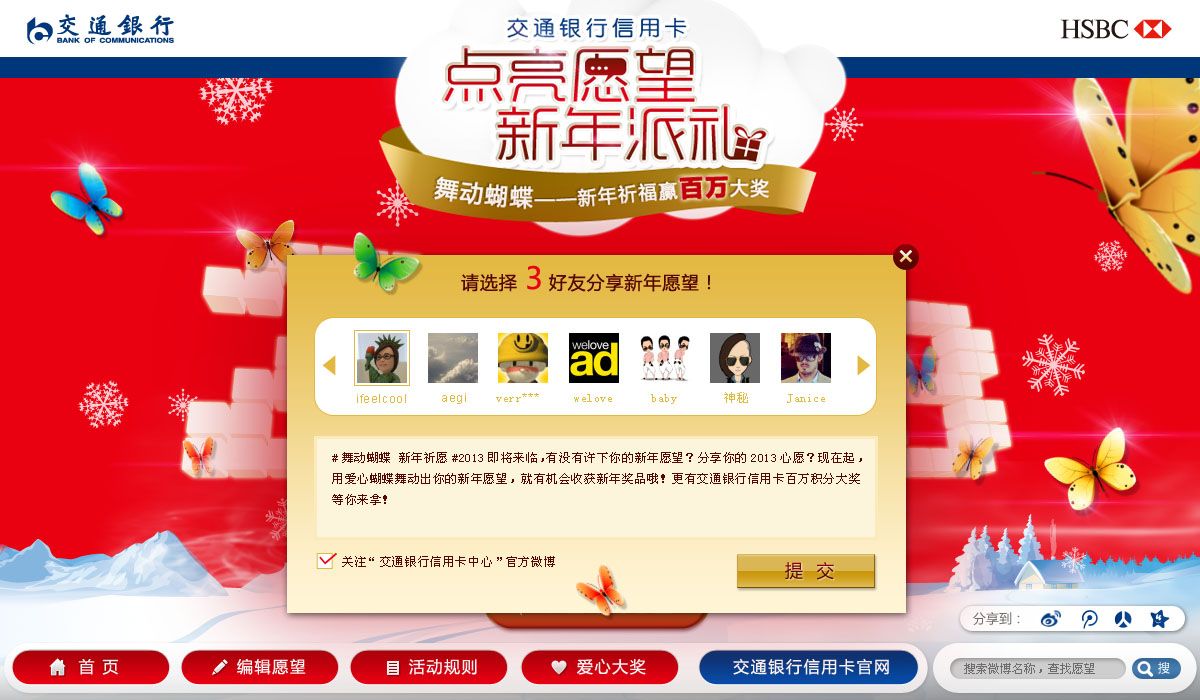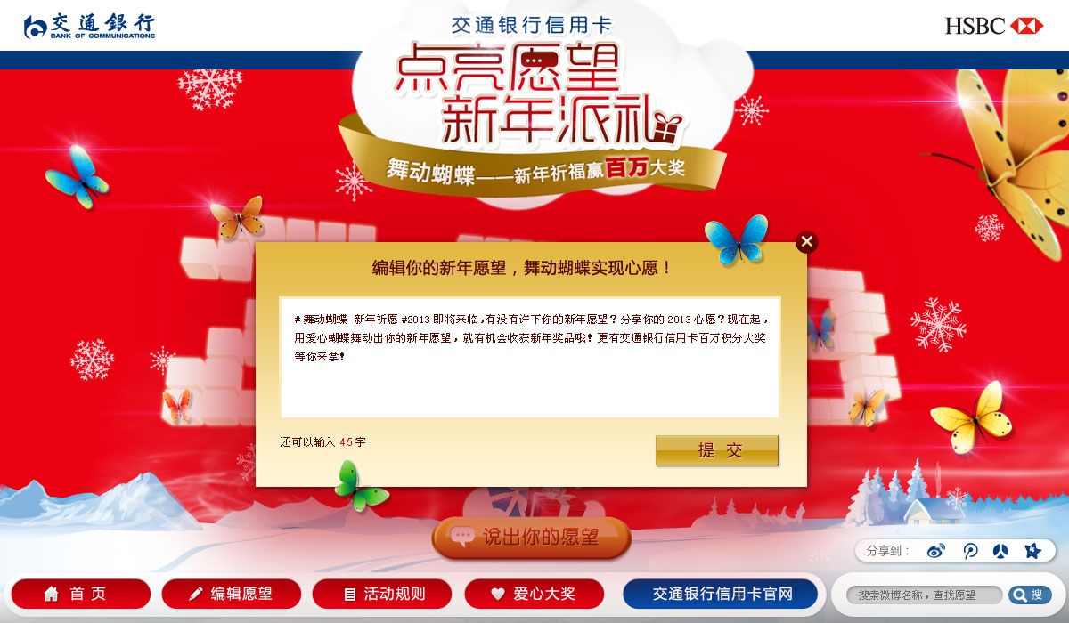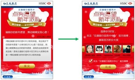 案例名称:交通银行信用卡:2013点亮愿望,新年派礼
