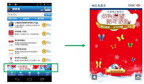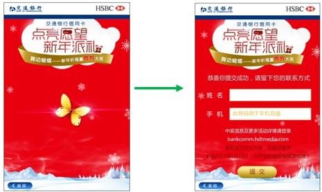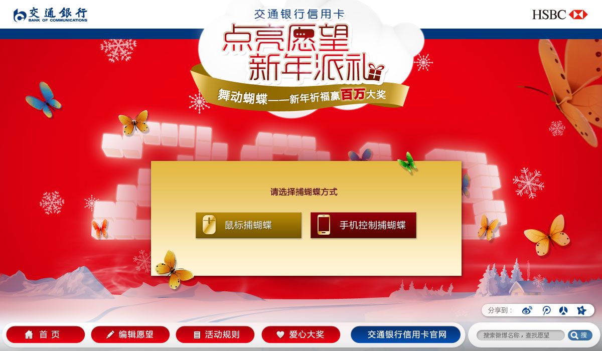 1.借新年许愿活动和双屏互动——捕蝴蝶互动游戏,在许愿、娱乐的同时,增强受众对交通银行信用卡品牌的亲近感。