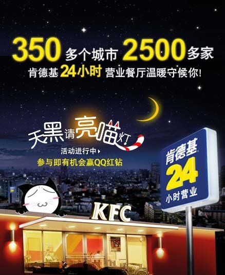 肯德基推出24小时营业服务,增加了粥组合的宵夜套餐。故推出夜猫子点亮喵灯活动传播信息。