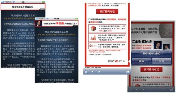 案例名称:汇丰财富论坛案例制作公司:mJoule涉及品牌: 汇丰银行 项目背景及目的收集报名者参加汇丰财富论坛项目需要解决的问题如何精准抓取高端用户投放周期2012年4月1日-5月1日 项目内容手机定向in-app广告;LBS手机移动广告带入活动页面,一键外呼。 供应商名称飞拓无线 案例创意