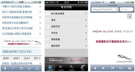 手机凤凰网+手机/Pad in-app广告;移动媒体广告带入Html5 网站