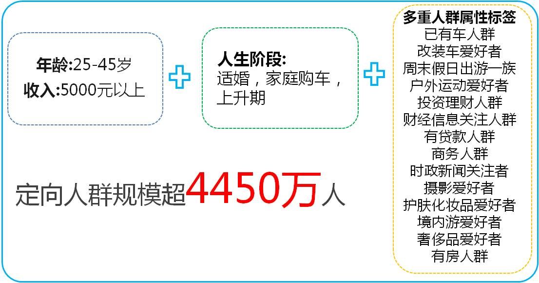根据力美DMP强大的人群数据库,进行“汽车行业属性定向+人群属性标签定向”