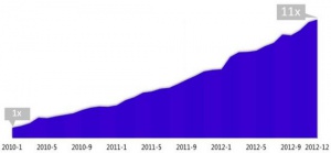 【搜狐IT消息】2013年2月26日,百度正式发布了最新的《移动互联网发展趋势报告》。报告显示,2012年第四季度,移动互联网上网时长首度超过PC互联网,互联网行业的移动化已经“不是选择题而是必选题”。 移动搜索流量3年增长11倍 已渗透日常生活 从2010年至2012年,我国的移动网民数量从2.77亿增长到4.2亿,年均增长为52%。而百度移动搜索的流量也相应增长了11倍,成为中国移动互联网所有基础性应用中增速最为快速的服务之一。数据还表明,与2011年相对平稳的增长曲线相比,节日的加速上扬趋势表明 详细