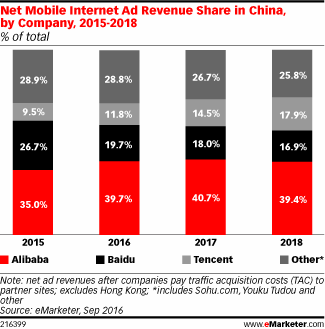 eMarketer:2016年阿里巴巴占全球移动广告市场份额将接近11%