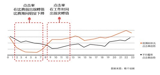 2.实时反馈,快速调整投放策略,效果最大化。通过对投放反馈分析,发现用户因赛程安排,对广告的反应趋势较普通广告有很大不同,就此调整策略,集中投放后,后期的点击率近一步提升,高达2.28%。"