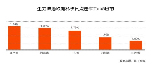 球迷对欧洲杯的关注不分地域,移动广告网络的覆盖使得生力啤酒用同样的小成本,在某些地区获得比其重点的华南市场更高的关注。